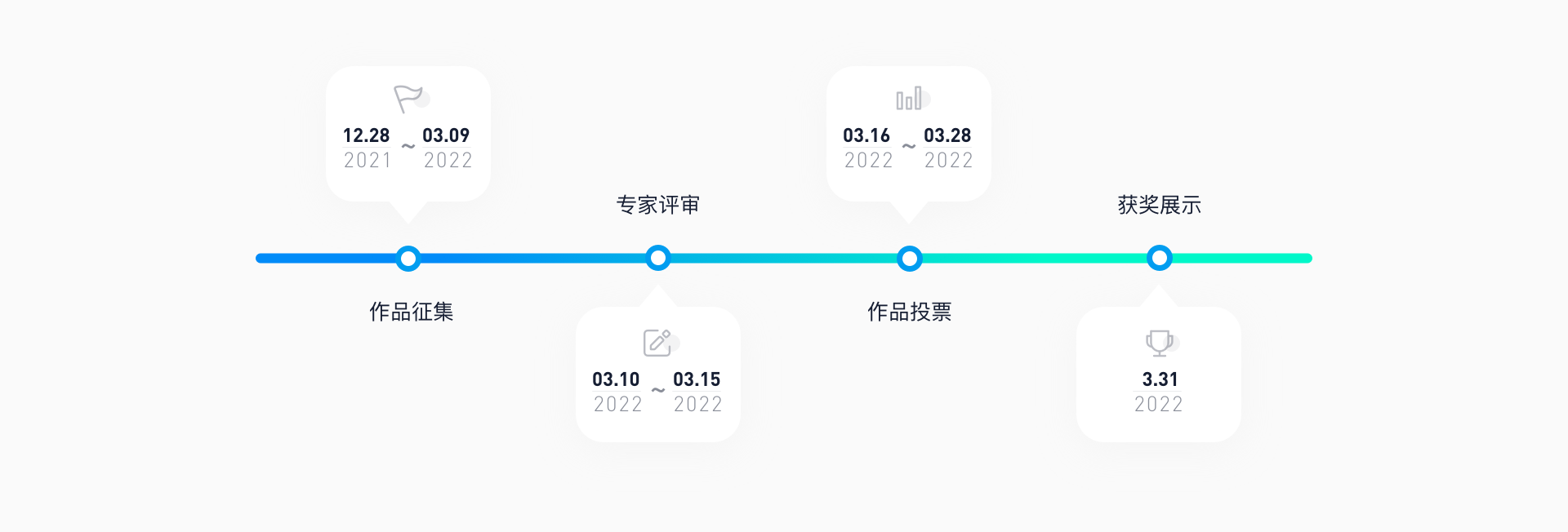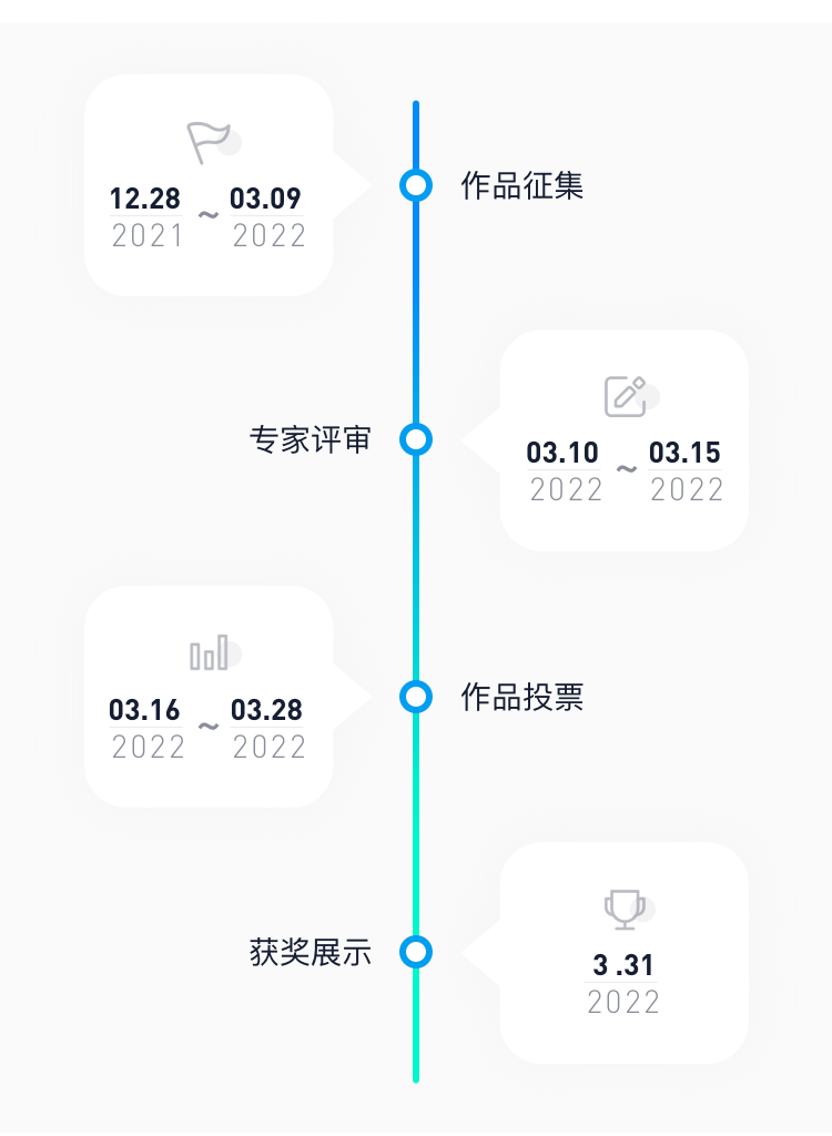 作品征集 → 专家评审 → 作品投票 → 获奖展示。